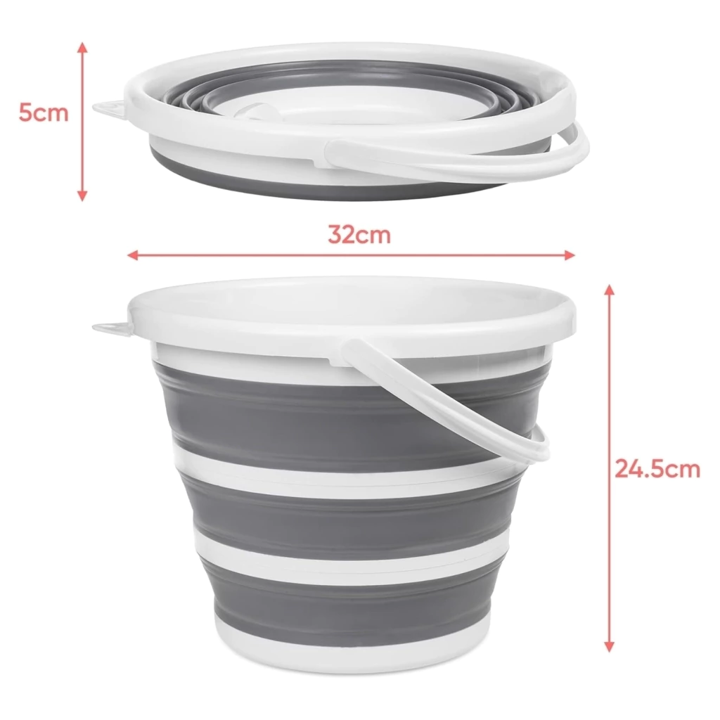 Con un tamaño compacto de solo 12,5 x 2 cm cuando está plegado y 12,5 x 9,5 cm en uso, este balde plegable ofrece una gran capacidad de 10 litros sin ocupar espacio innecesario. Ideal para múltiples usos, desde almacenamiento en el hogar hasta actividades al aire libre.