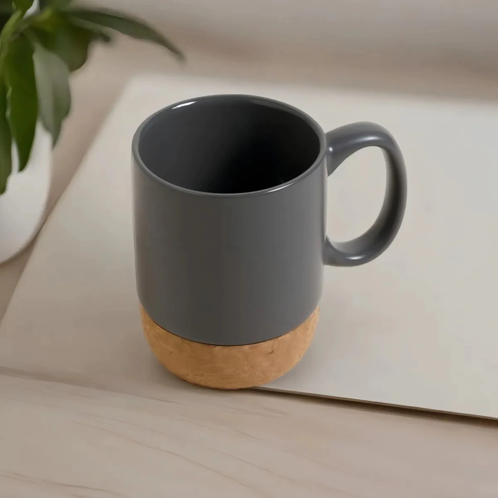 MUG NET BLACK /GRIS /BLANCO BASE DE CORCHO 190 ML Jarro mug de cerámica color negro, con base de corcho, esmaltado mate por fuera y brillante por dentro.